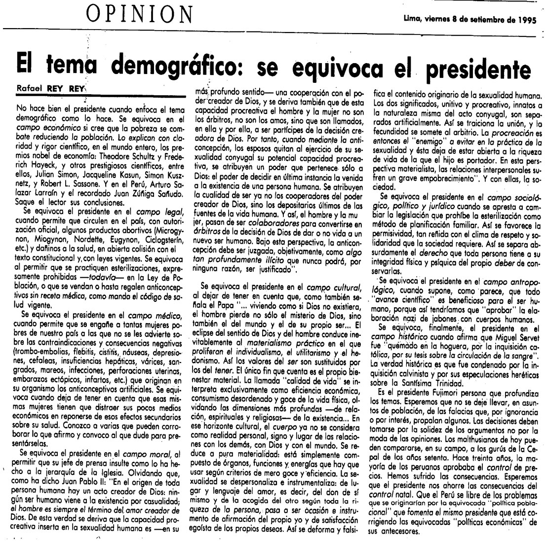 Demografía: se equivoca el presidente By Rafael Rey On 8 Septiembre, 1995 In Demografía, El Comercio, Familia Previous Siete reflexiones Next Mal ejemplo del Estado