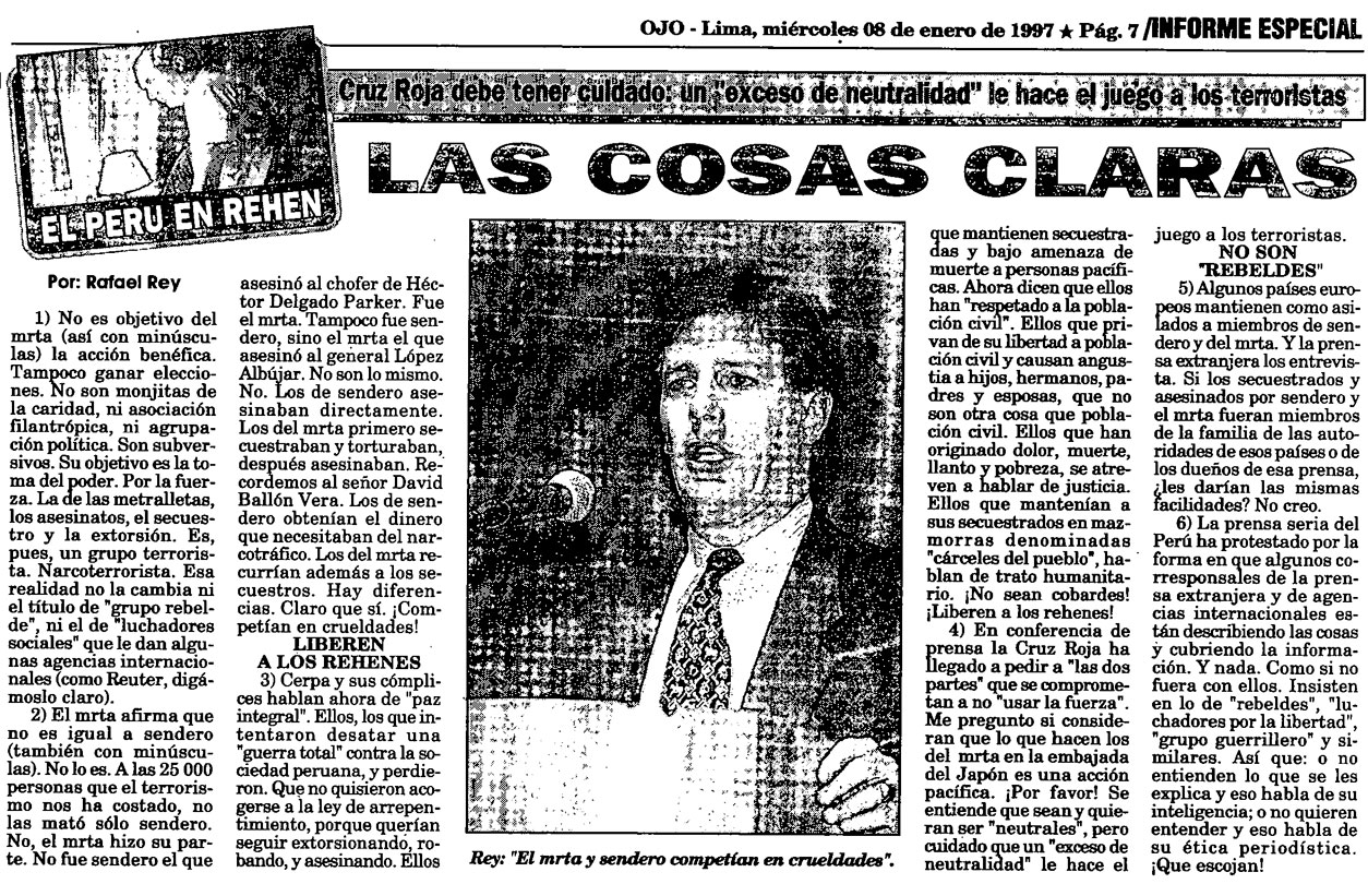 Las cosas claras By Rafael Rey On 8 Enero, 1997 In Ojo, Terrorismo y DDHH Previous Derecho a la información Next Educar la libertad