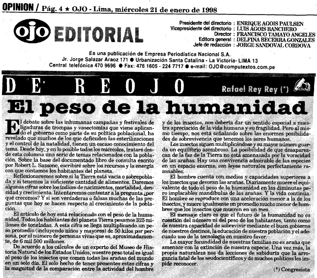El peso de la humanidad By Rafael Rey On 21 Enero, 1998 In Demografía, Ojo Previous Campaña y metas Next Espacio