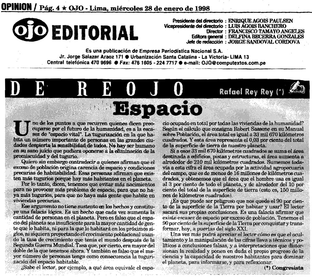 Espacio By Rafael Rey On 28 Enero, 1998 In Demografía, Ojo Previous El peso de la humanidad Next Volumen de la Humanidad