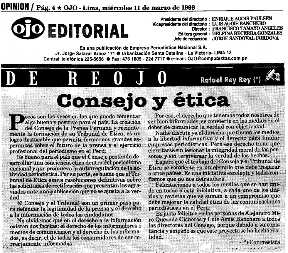 Consejo y ética By Rafael Rey On 11 Marzo, 1998 In Bien común, Ojo Previous El niño Next Julián Simon