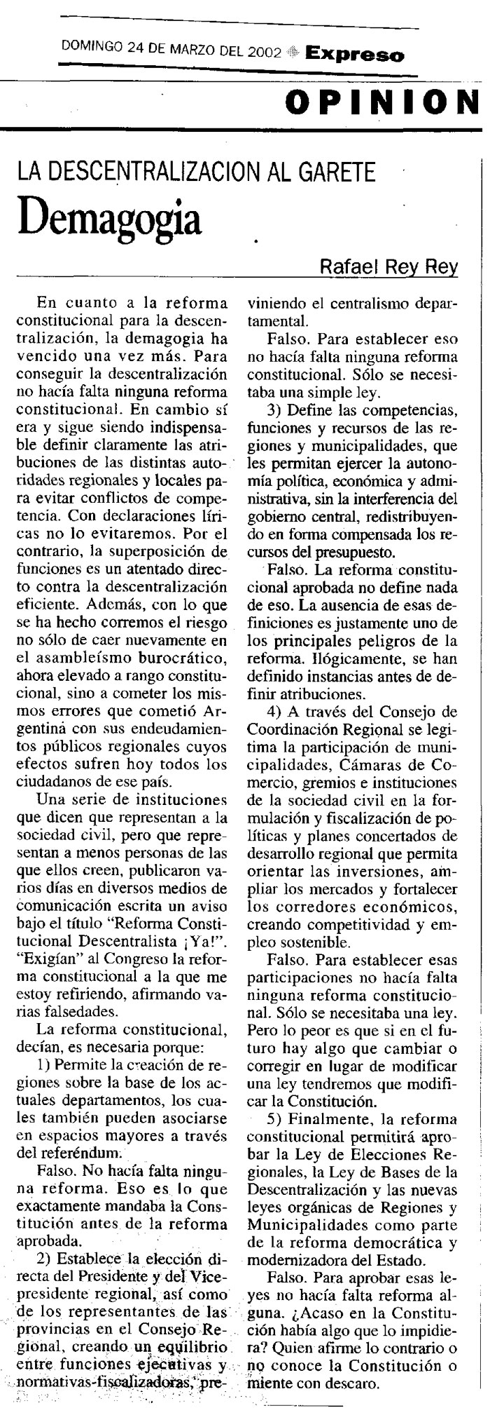 Demagogia By Rafael Rey On 24 Marzo, 2002 In Democracia, Expreso Previous Dos sugerencias Next Rectifíquese