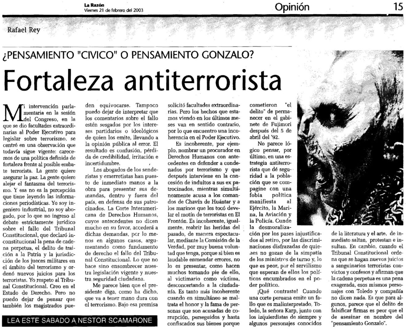Fortaleza antiterrorista By Rafael Rey On 21 Febrero, 2003 In La Razón, Terrorismo y DDHH Previous Denuncia, un deber Next Derechos y libertades