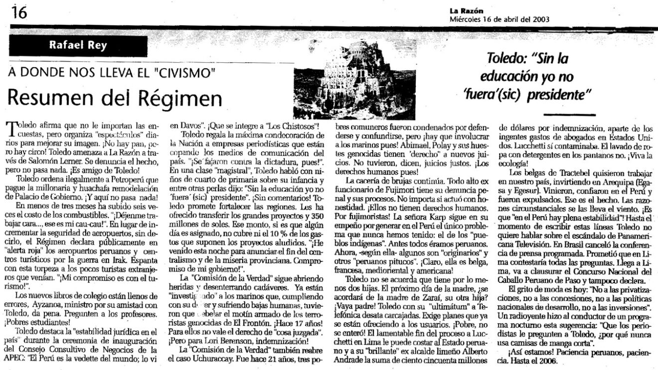 In La Razón, Realidad