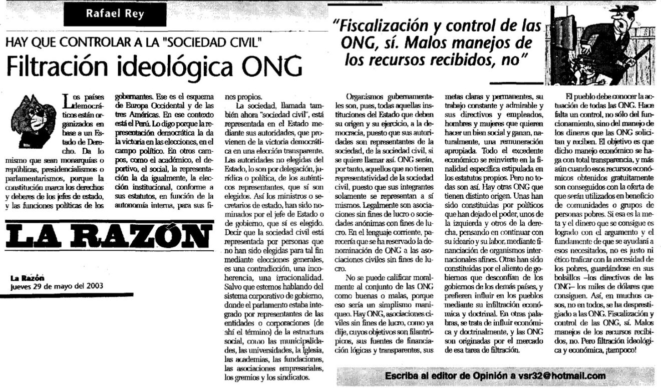 Filtración ideológica By Rafael Rey On 29 Mayo, 2003 In Autoridad, La Razón Previous Subsidiariedad, palabra mágica Next Necesidad del fuero militar