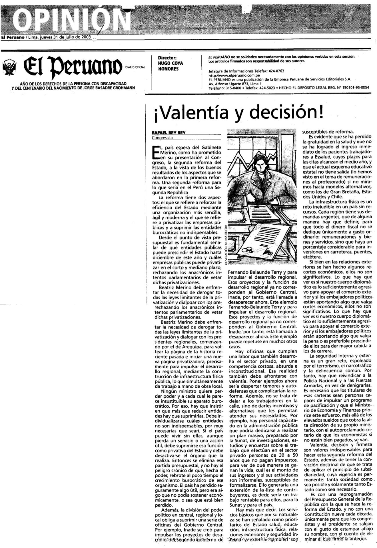 Valentía y decisión By Rafael Rey On 31 Julio, 2003 In El Peruano, Realidad Previous El TC en la picota Next En busca de justicia
