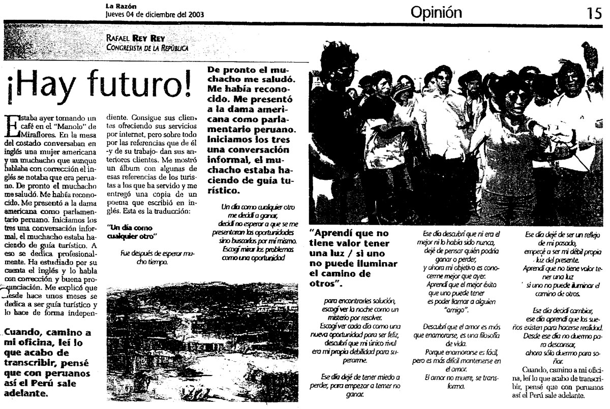 Hay futuro By Rafael Rey On 4 Diciembre, 2003 In La Razón, Realidad Previous Abimael tiene su peón! Next Superar el corto plazo