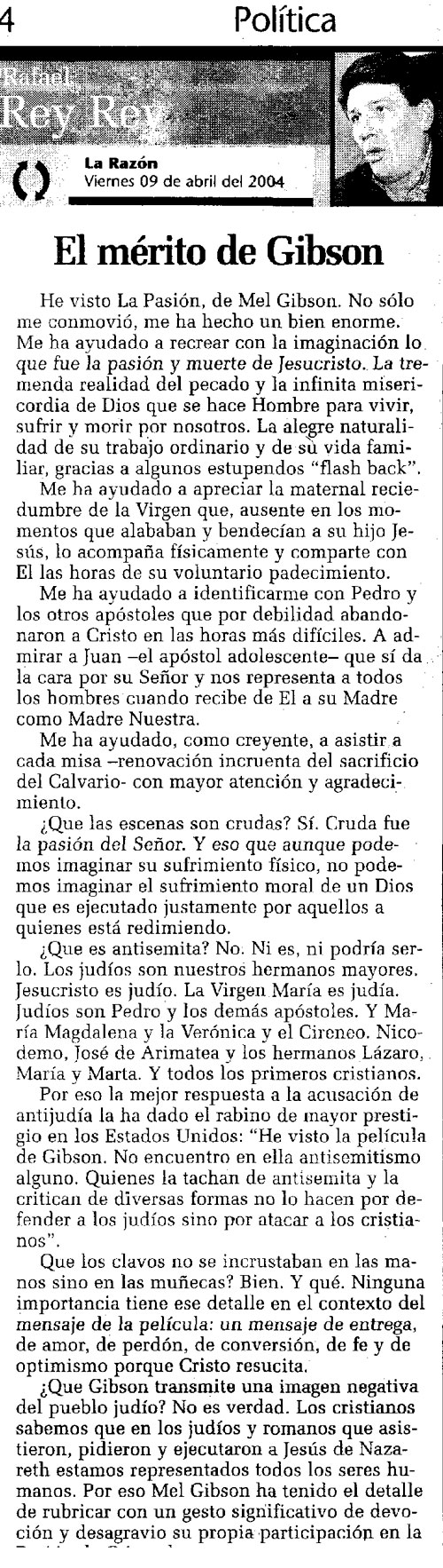 El mérito de Gibson By Rafael Rey On 9 Abril, 2004 In Bien común, La Razón Previous El ITF, otro error Next El apostolado de Gibson