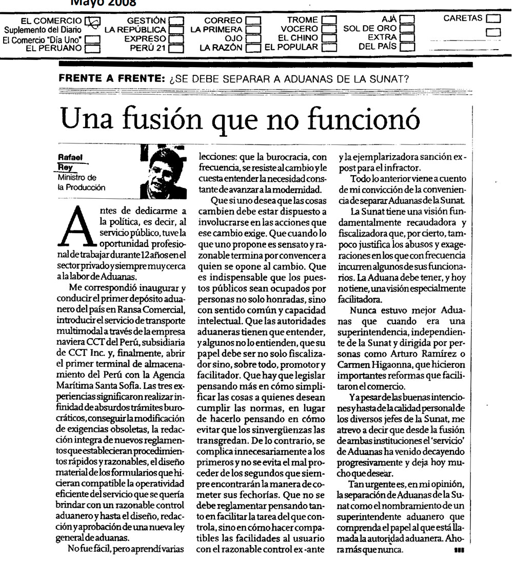 Fusión que no funcionó By Rafael Rey On 30 Mayo, 2008 In Economía de mercado, El Comercio, Tributación Previous La Caja del Pescador Next Información errada I